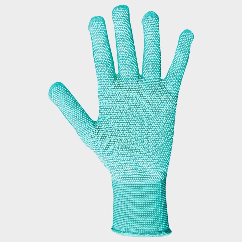 Γάντια από ζέρσεϊ πολυεστέρα χωρίς ραφή με σταγόνες πολυμερούς στην παλάμη και τα δάχτυλα, ελαστική μανσέτα.