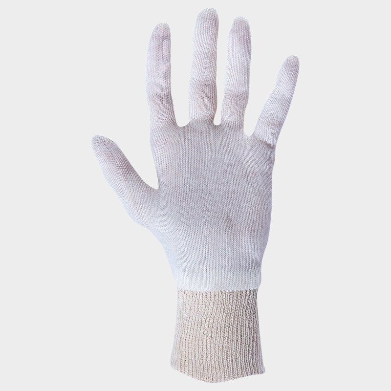 Γάντια από βαμβακερό ζέρσεϊ με ελαστική μανσέτα.