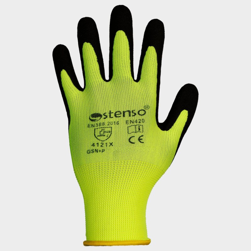 Γάντια από ελαστικό ζέρσεϊ πολυαμιδίου, βουτηγμένα σε αφρό λατέξ με μικροπορώδη, εξαιρετική διαπερατότητα ατμών, πολύ καλή πρόσφυση σε ξηρό, υγρό και λιπαρό περιβάλλον.