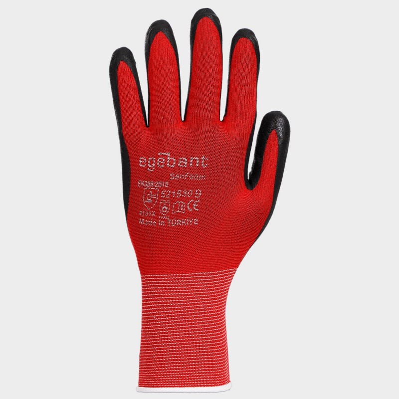 Γάντια βουτηγμένα σε αφρό νιτριλίου EGEBANT SANFOAM κόκκινο 07000349
