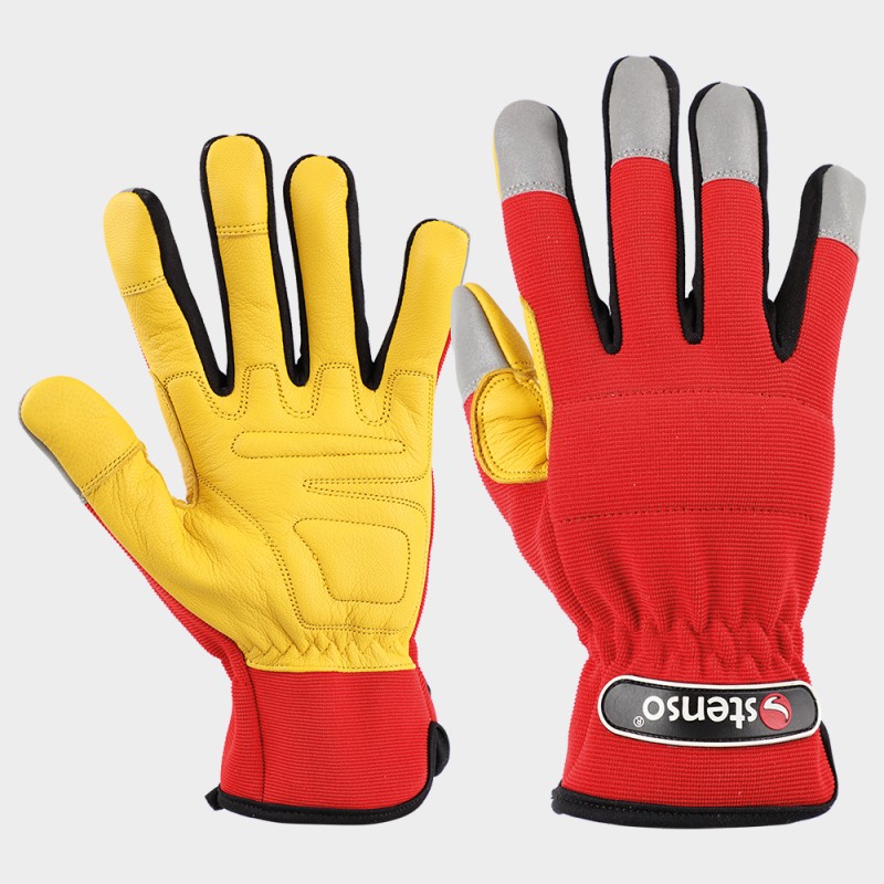 Γάντια Stenso από δέρμα και spandex. Ενισχυμένα τρία δάχτυλα με επιπλέον δέρμα και ενισχυμένη περιοχή μεταξύ αντίχειρα και δείκτη. Ανακλαστικά στοιχεία στην άκρη όλων των δακτύλων. Ελαστική ταινία στην περιοχή του καρπού. Λεπτό fleece στο εσωτερικό του γαντιού.