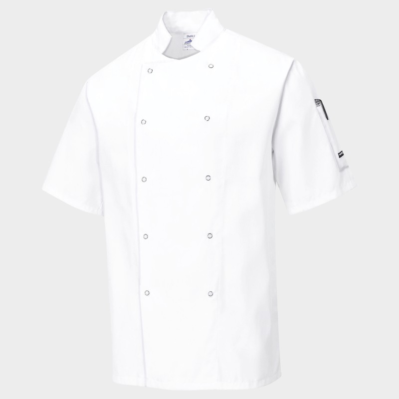 Σακάκι κουζίνας με κοντά μανίκια και κούμπωμα με κουμπιά tic-tac.